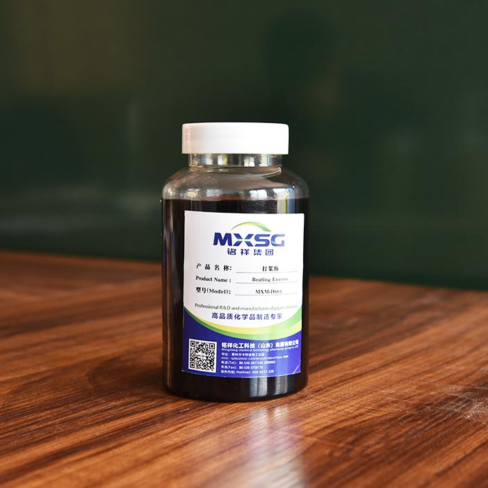 MXM-D666 beating enzyme is a high efficiency enzyme preparation composed of many kinds of enzyme preparations. Under appropriate conditions, the fiber is reformed to achieve full water absorption and moistening, as well as silk broiling, so as to reduce beating energy consumption, prolong knife sharpening service life and improve paper strength.
